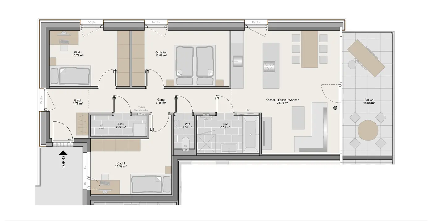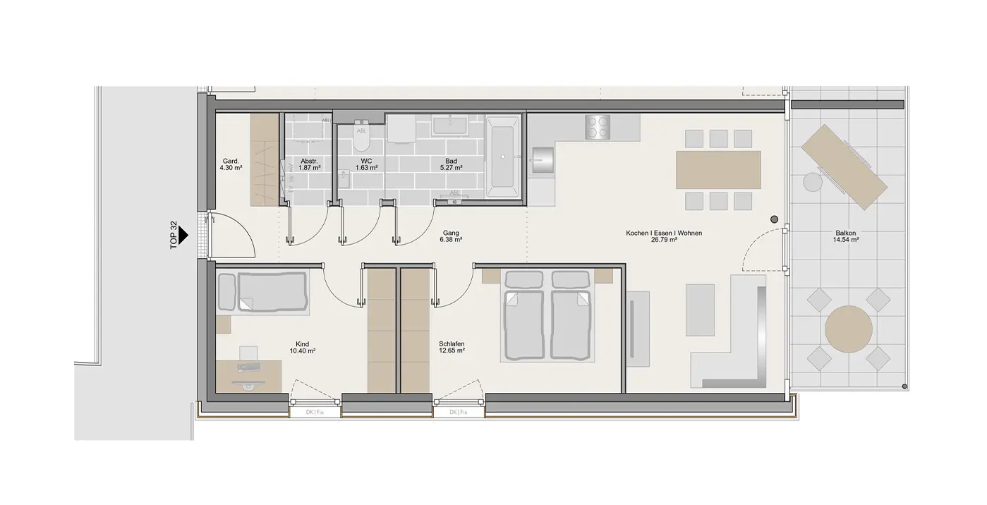 Ankommen und wachsen. Hier hat das Familienleben Platz. Die 4-Zimmer-Wohnungen sind als langfristiger Lebensmittelpunkt konzipiert. Mit großzügigen Wohnbereichen, viel Stauraum und Platz für Hobbys und Kinder. Dein Zuhause, in dem Erinnerungen entstehen.